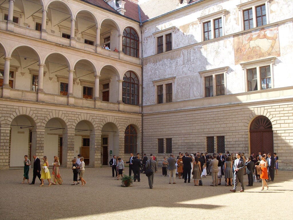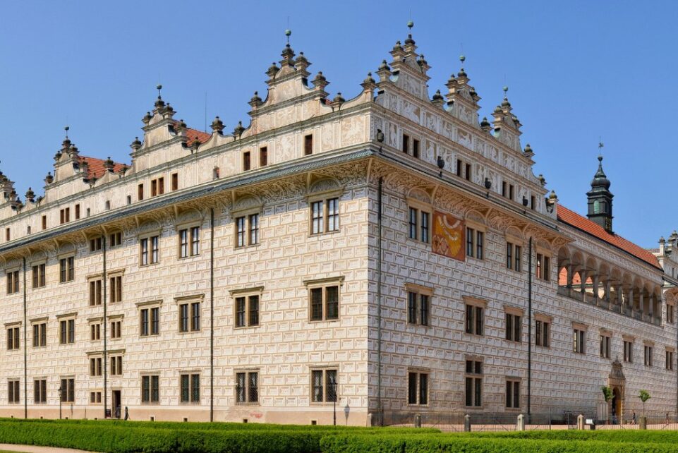 Miesto centre stovi išskirtiniai rūmai, laikomi vienu unikaliausių visoje Čekijoje. Jie pastatyti XVI amžiuje Vratislavo Pernšteino iniciatyva, o projektą parengė italų architektas Giovanni Batista Aostalli. Rūmų fasadus ir frontonus puošia sgraffito technika atlikti ornamentai ir figūrinės kompozicijos su augalų, vaisių bei kasdienio gyvenimo scenų motyvais.