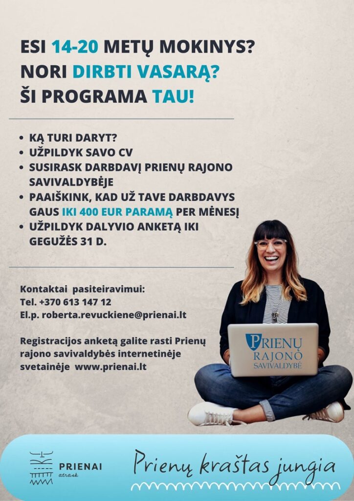 Svarbu tai, kad darbas vyks vasaros laikotarpiu – liepos ir rugpjūčio mėnesiais, kai nevyksta ugdymo procesas. Tai leidžia suderinti poilsį su naudinga veikla.