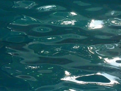 Vandens molekulės efektyviau sugeria ilgesnio bangos ilgio šviesą, ypač raudoną, o trumpesnio bangos ilgio – mėlyna šviesa – geriau išsklaidoma ir atsispindi atgal į žmogaus akį. Vandens spalvai taip pat didelę įtaką daro mineralai, smėlis, dumblas ir organinės medžiagos. Didelis švarumas ir skaidrumas dažniausiai, nors ir ne visada, lemia sodresnę mėlyną spalvą.
