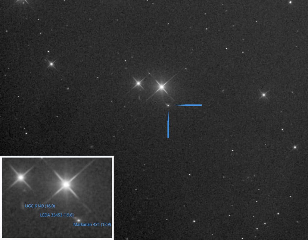 Blazaras – tai aktyvus galaktikos branduolys: galaktika, kurios centre esanti supermasyvi juodoji skylė ryja aplinkinę medžiagą ir į kosmosą išsviedžia plazmos čiurkšlę beveik šviesos greičiu.