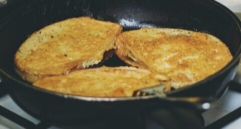 Kepkite riekes įkaitintame svieste (galima rinktis ir lydytą sviestą) arba alyvuogių aliejuje ant vidutinės ugnies: per didelė ugnis greitai pridegins kiaušinį, o per maža privers duoną sugerti daugiau riebalų. Kepkite iš abiejų pusių po 2–3 minutes, kol riekės taps sodriai auksaspalvės.