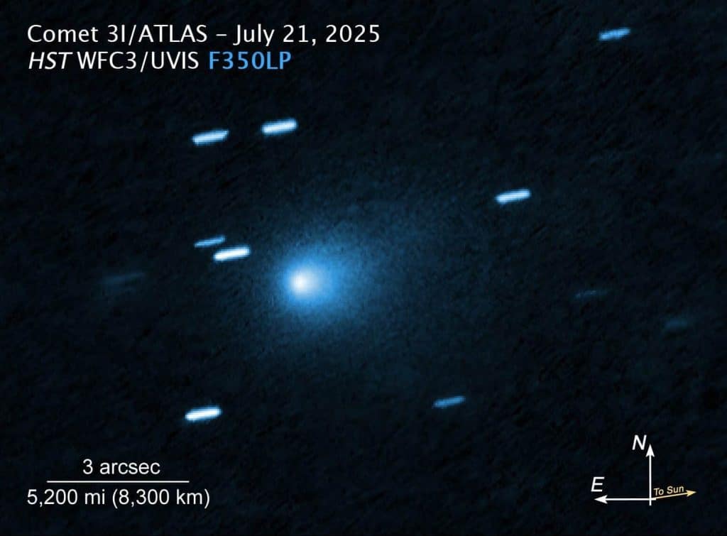 Kosminio teleskopo „Hubble“ darytos 3I/ATLAS nuotraukos atskleidė daug sudėtingesnį vaizdą, nei paprastai matome stebėdami kometas. Tobula čiurkšlių simetrija, reguliarūs virpesiai ir ryškūs šviesumo pokyčiai sudaro mįslingą paveikslą, kuriam trūksta paprasto, aiškaus paaiškinimo. Nors intuityviai norisi ieškoti natūralių priežasčių, neįprastas šio reiškinio tikslumas verčia klausti, ar kartais nematome visiškai naujo, iki šiol neregėto kosminio objekto tipo.