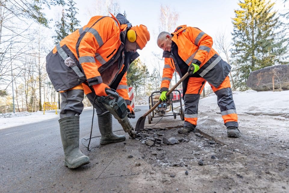 Žiemą, kai negalima naudoti patvaraus karšto asfaltbetonio, gatvių pažeidimai remontuojami laikinomis priemonėmis – šaltu asfaltu, perdirbtu asfaltu arba skaldos ir žvyro mišiniu. Taip šalinamos avarinės būklės, gilesnės nei 5 cm duobės.