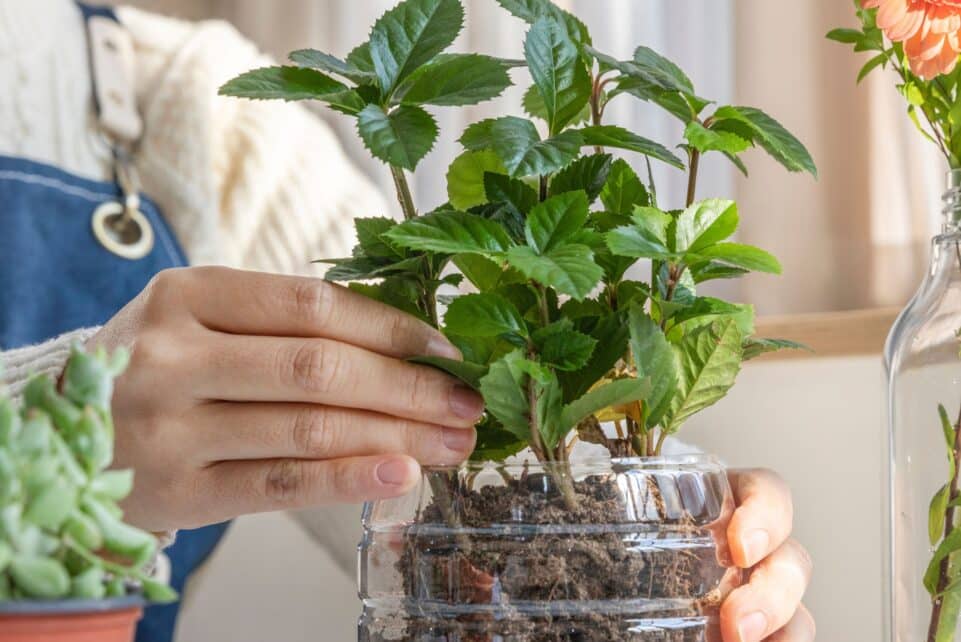 Persodinimą į dirvą planuokite tada, kai praeina vėlyvų šalnų pavojus ir daigai būna išauginę kelias tikrųjų lapų poras. Atsargiai išimkite augalus iš butelio, stengdamiesi nepažeisti šaknų, ir pasodinkite juos į nuolatinę vietą.